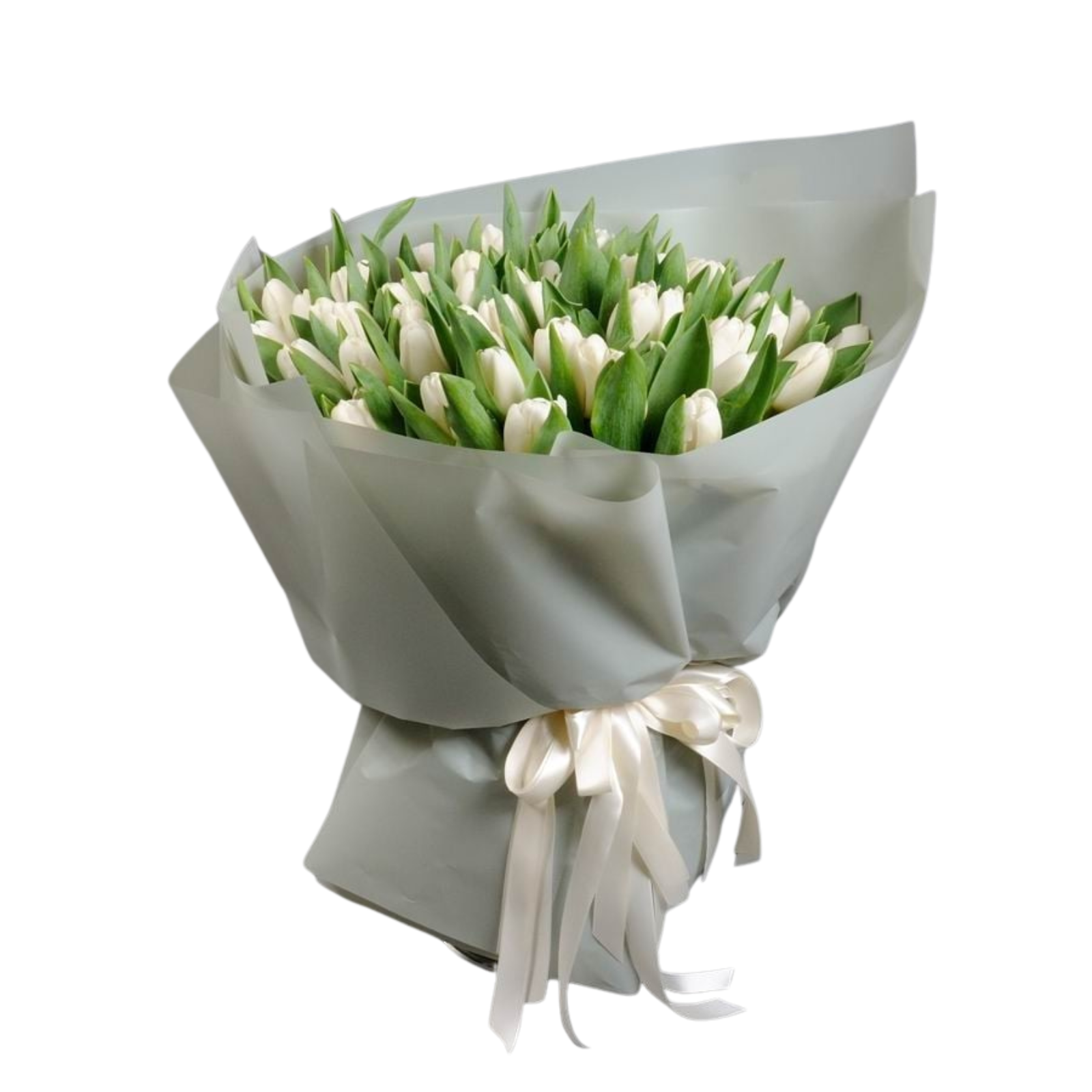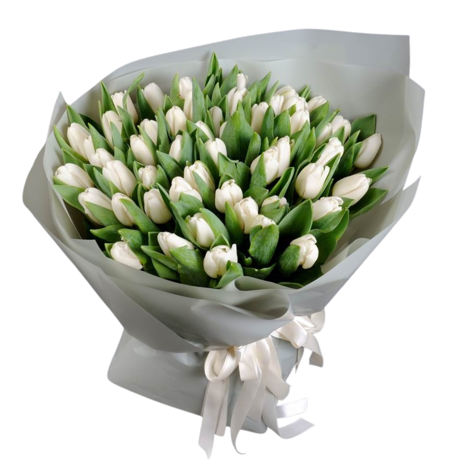 31 x lalele albe „Pure White”, 3 x ambalaj special, 2 x satin