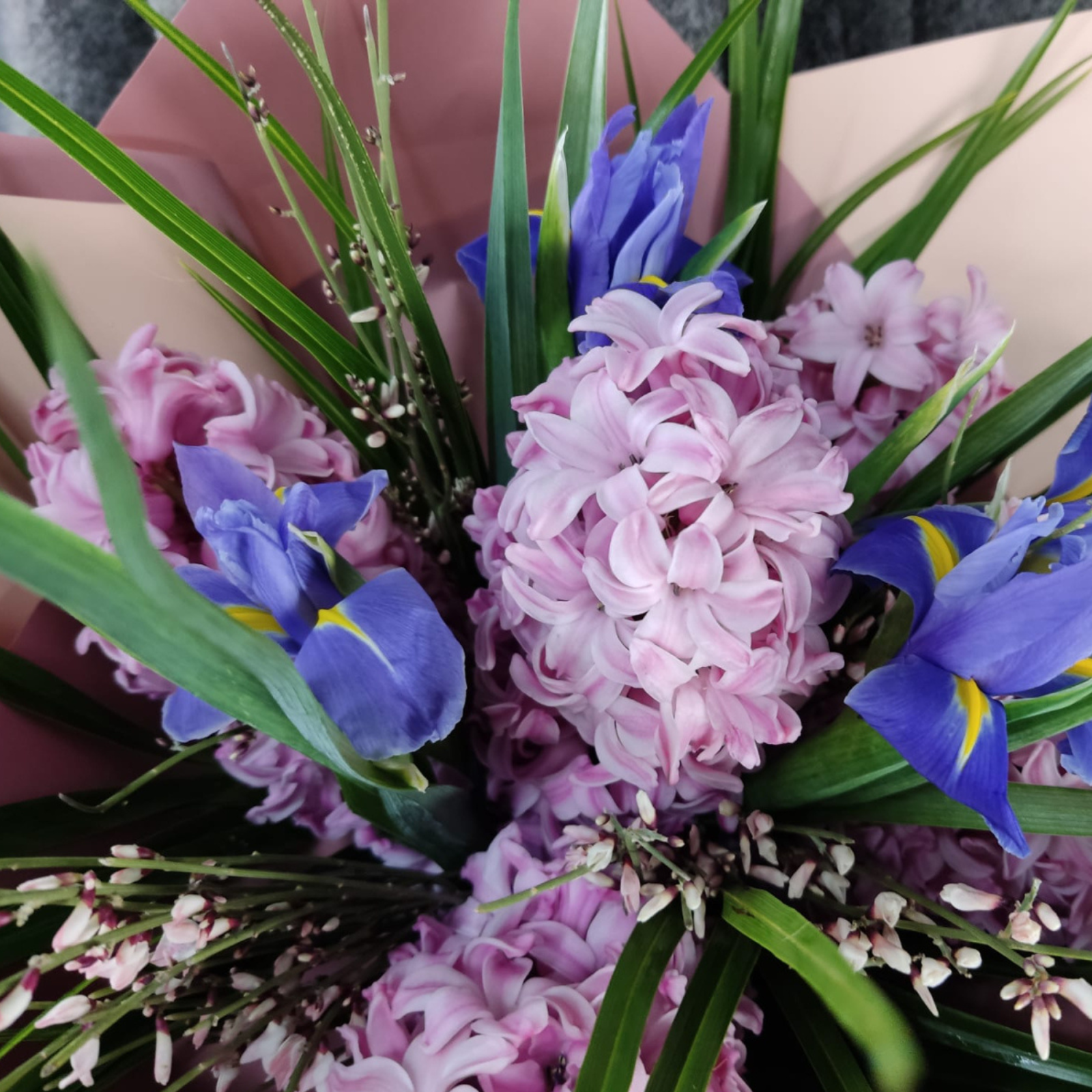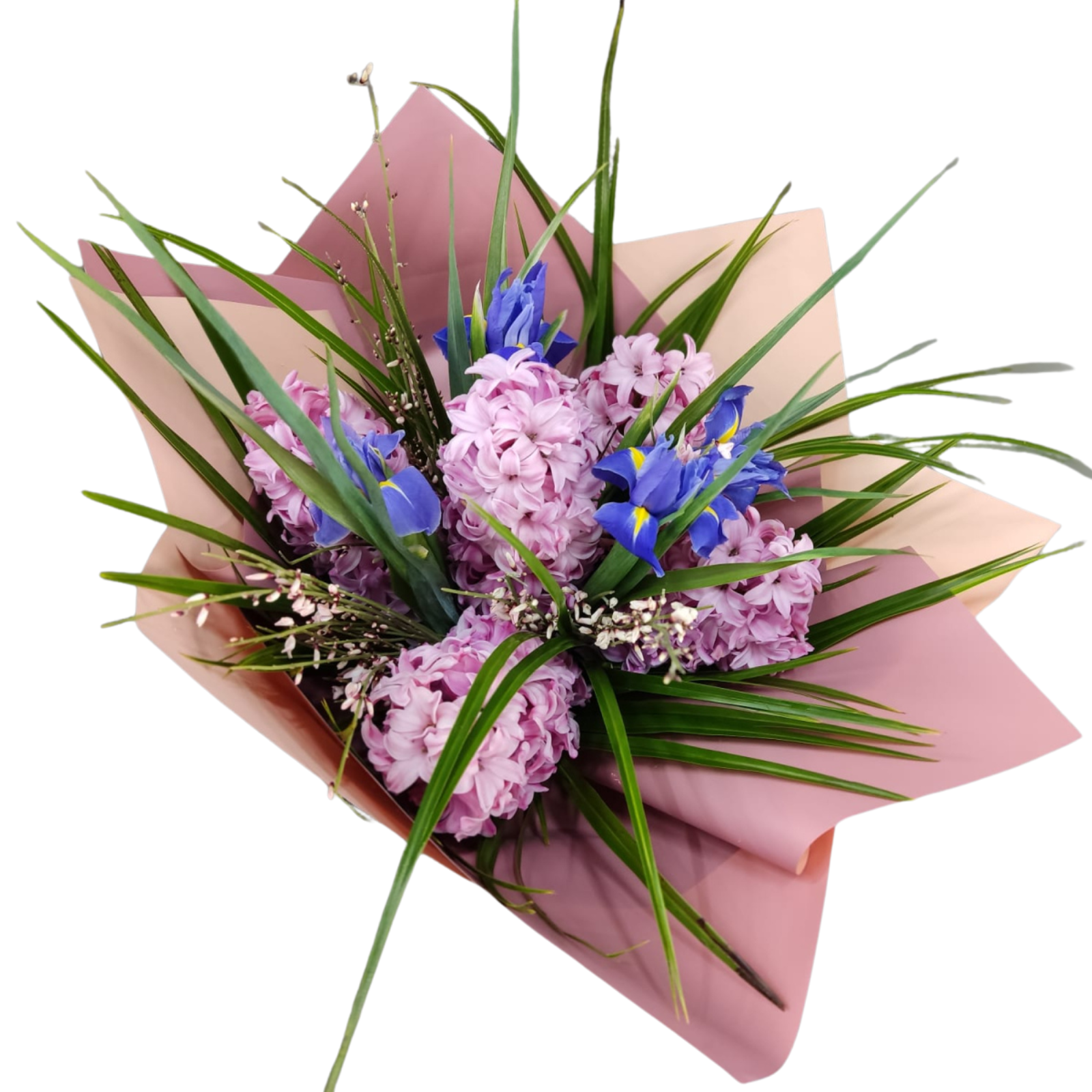 • Premium: buchetul conține 9 zambile, 6 iriși, 4 phoenix, 3 ambalaj decorativ, 1 panglică.