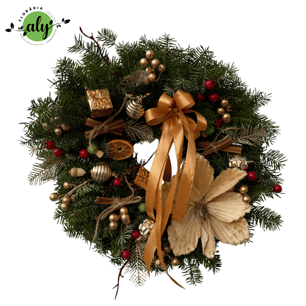 Această coroniță decorativă aduce în prim-plan eleganța atemporală a nuanțelor aurii, oferind un aspect luxos și festiv. Realizată manual în atelierul Florăria Aly, fiecare detaliu este atent ales pentru a crea o piesă luminoasă, echilibrată și plină de farmec.